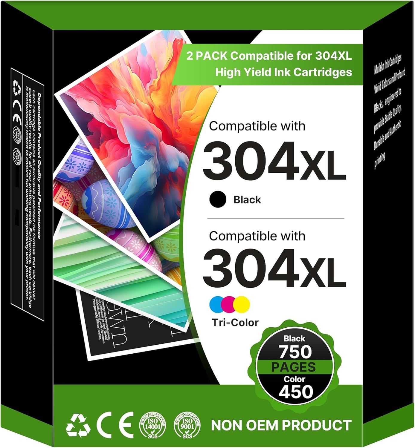 304XL Encre Compatible avec Cartouche HP 304 Noir et Couleur Pack d'encre XL pour HP Deskjet 3760 3762 2630 HP Envy 5030 5010 Imprimante(2-Pack)