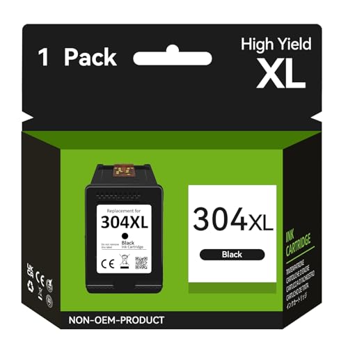 304 Noir Cartouches d'encre compatibles avec HP 304 Cartouches d'encre 304 XL pour HP Envy 5000 5030 5010 5020 5032 DeskJet 3750 3760 2620 3720 2630 2622 3762 3735 Noir (1 pièce)