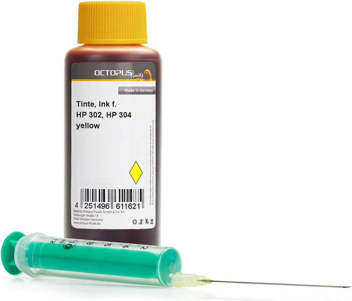 Encre Pour Imprimante 100Ml Compatible Avec Les Cartouches Pour Imprimante Hp 302, Hp 304 Jaune Avec Seringue De Recharge Et Accessoires (Pas D'Oem)[ENC943730]