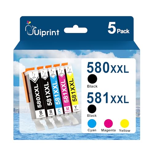 Uiprint 580XXL 581XXL Compatible Cartouche pour Canon PGI-580 CLI-581 XXL Encre pour Pixma TR8550 TR7550 TS705 TS705a TS6150 TS6151 TS6250 TS6251 TS6350 TS6350a TS6351 TS6351a TS9550 TS9551C(5 Pack)