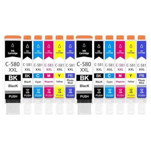 580 581 Xxl Cartouches Encre Compatible Pour Canon Pgi 580 Cli 581 Xxl Pour Canon Ts6150 Ts6250 Ts8150 Ts8151 Ts8250 Ts6151 Ts8350 Ts6350 Ts705 Ts6251 Ts9150 (12 Pack)