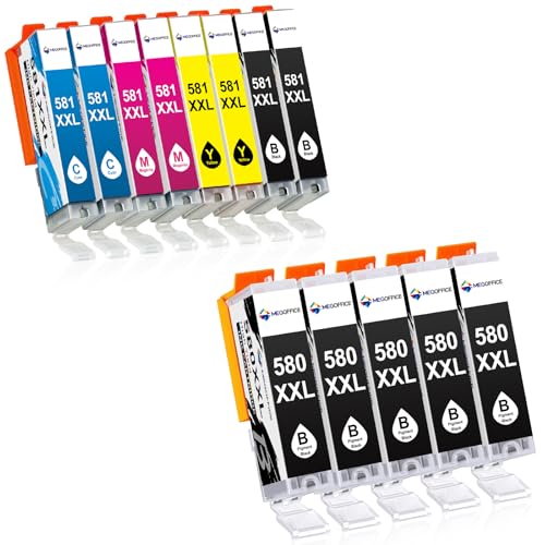 MEGOFFICE 580XXL 581XXL Encre pour PGI-580 XXL CLI-581 XXL Cartouches compatibles pour Canon Pixma TR7500 TR8500 TS6100 TS6200 TS6300 TS700 TS8200 TS8350 TS9150 Imprimante(13 Pack)