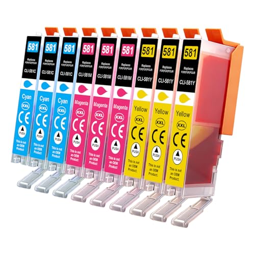 D&C 581 XXL Cartouches d'encre Compatibles avec Canon CLI-581XXL Encre pour Canon Pixma TR8550 TS6350a TR8500 TS6150 TS6350 TS6250 TS6300 TS8251 TS8150 TS6151 TS9550 TS9551, 3 Cyan 3 Magenta 3 Jaune