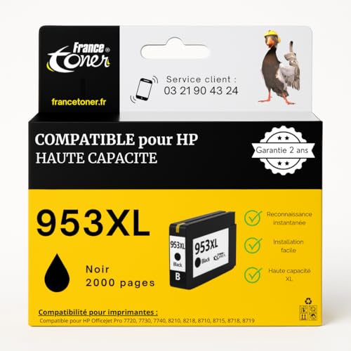 FranceToner - 953XL - Cartouche d’Encre Compatible pour HP 953 XL Noir - Haute Capacité - pour Imprimantes OfficeJet Pro 7700 7720 7730 7740 8200 8210 8216 8218 8710 8715 8718 8719 8720 8730 8740...