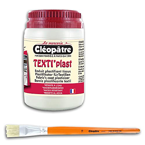 CLEOPATRE - Enduit imperméabilisant et plastifiant Texti Plast 250g avec sa brosse plate n° 18, BLANC