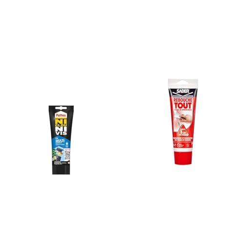 Pattex Ni Clou Ni Vis Fix Multi Matériaux Intérieur & Extérieur, colle de fixation & Sader Rebouche Tout – Enduit de Rebouchage Intérieur Prêt à l’Emploi – Tous Supports