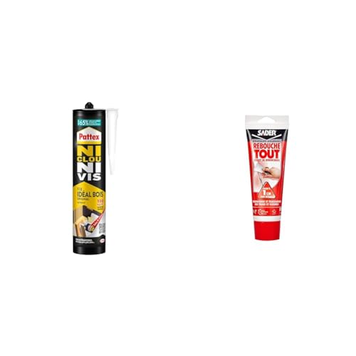Pattex Ni Clou Ni Vis Fix Idéal Bois (cartouche de 380 g) – Colle de fixation à main & Sader Rebouche Tout – Enduit de Rebouchage Intérieur Prêt à l’Emploi – Tous Supports – Rebouchage et Égalisation
