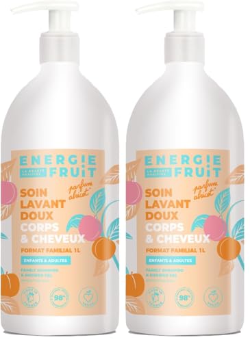 ENERGIE FRUIT | Soin Lavant Doux Format Familial 1L | Corps et cheveux | Parfum abricot gourmand | 1000ML (Lot de 2)
