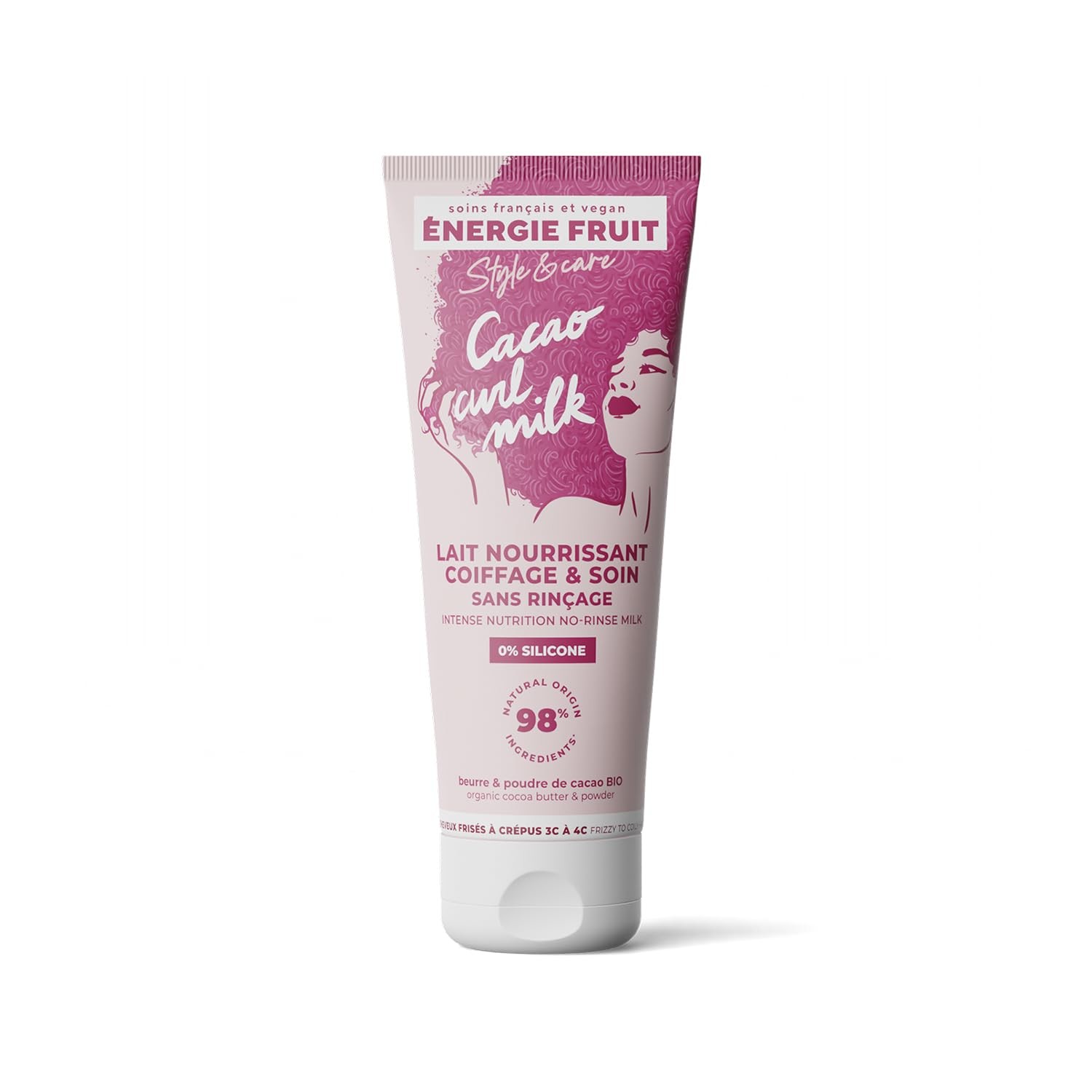 ENERGIE FRUIT | Lait coiffant sans silicone | Beurre & poudre de cacao | Cheveux Frisés & Crépus | Vegan, Marron, 200.00 ml (Lot de 1)
