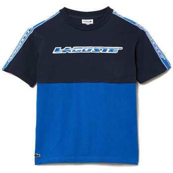 T-shirt enfant Lacoste T-SHIRT BLEU ENFANT COLOR-BLOCK AVEC BANDES CONTRAST