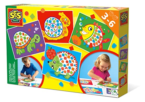 SES Creative Mosaique Loisir Creatif | Activité Manuelle | Idée Cadeau | Made in Holland | Pour les enfants Dès 3 ans | Multicolore | 12 Cartes + Autocollants | 14827