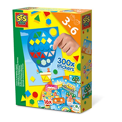 SES Creative Kit J'Apprend à Reconnaître les Formes | Mosaique Loisir Creatif | Idée Cadeau | Made in Holland | Pour les enfants Dès 3 ans | Multicolore | 16 Cartes + 300 Autocollants | 14839