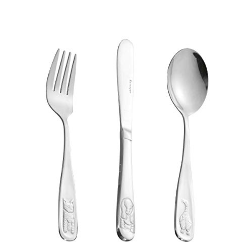 Esmeyer Lustige Tierchen - Ensemble de 3 Couverts pour Enfant LUSTIGE TIERCHEN en INOX Poli 18/0, pour Les Enfants dès 3 Ans