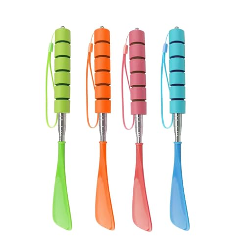 Yuannee Chausse Pied Telescopique,4 PCS Couleurs Chausse-Pied Télescopique Long Manche Poignée Ergonomique en Métal pour Seniors Femmes Hommes Enfile-Chaussette Aide à l'Équipement