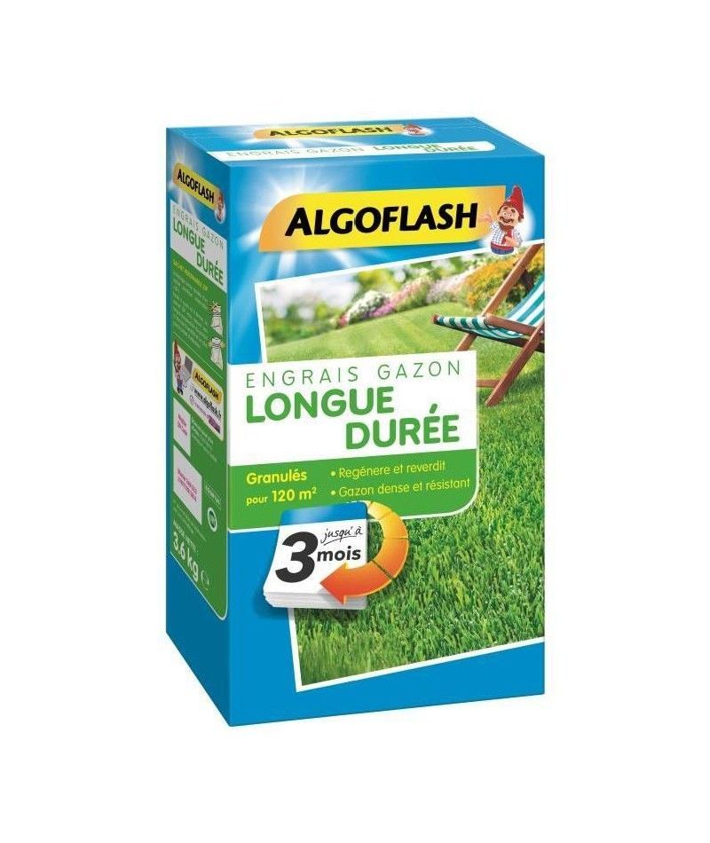 Algoflash Engrais Gazon Longue Durée 3 Mois - 3,6kg