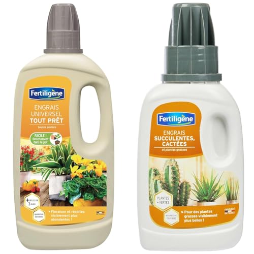 FERTILIGENE FUPAL1 - Engrais Liquide Universel 1 L - Plantes plus belles en 7 jours & FECA250 - Engrais Liquide Succulentes, Cactées 250ml -Des plantes plus vertes en 7 jours