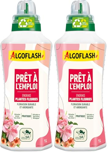 Algoflash Engrais Liquide Plantes Fleuries, Prêt à l'emploi, Utilisable en Agriculture Biologique - 1 L, Marron (Lot de 2)