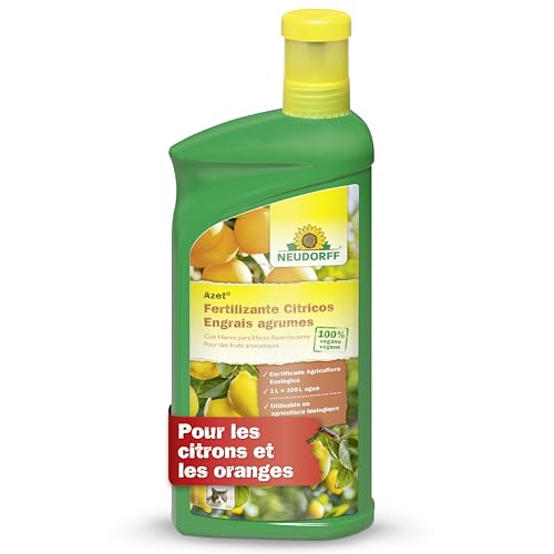 Neudorff Azet Engrais Agrumes – Engrais liquide 100% vegan qui favorise la floraison, la nouaison et la taille des fruits des citronniers, 1 litre
