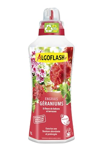 Algoflash Engrais Liquide Géraniums et Toutes Fleurs de Balcon, Utilisable en Agriculture Biologique - 1 L, Marron