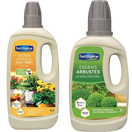 Fertiligène Engrais Universel Tout Prêt, 1L & FERTILIGENE FEPO400 Engrais Liquide Arbustes en Pots, Buis et Bambous 400 ml - Arbustes plus vert en 7 jours - 400 ml jusqu'à 28 L de solution diluée