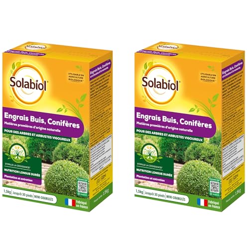 SOLABIOL Engrais Conifères et Arbustes d'ornement - 1,5 Kg - 100% Organique - Action Longue Durée SOCONY15 (Lot de 2)