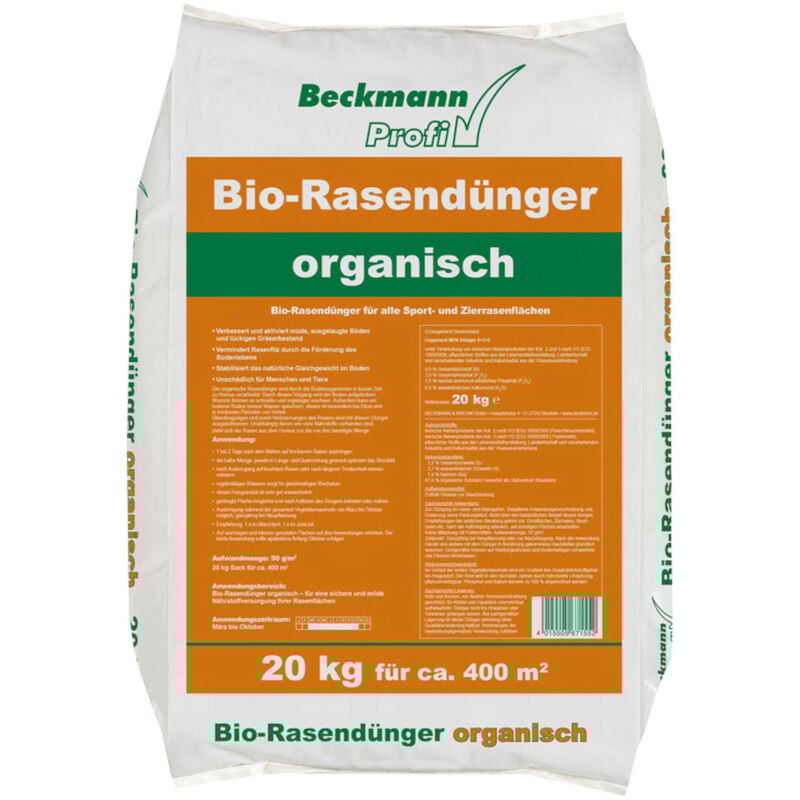 BECKMANN PROFI engrais organique pour gazon 20 kg inoffensif pour l’homme et l’animal