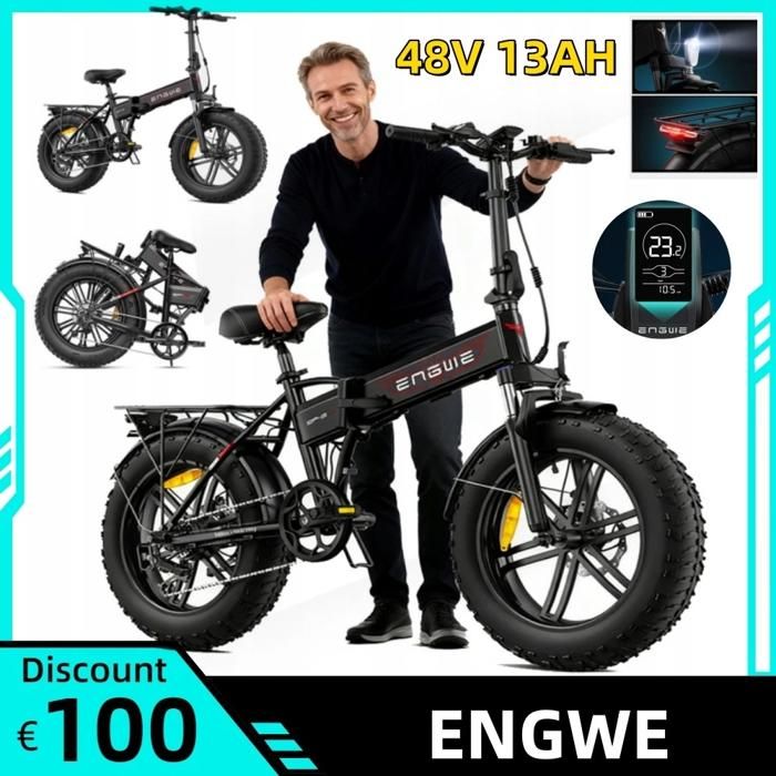 ENGWE Velo Electrique Pliable Vélo Électrique avec 20x4.0 Pouces Fat Tire,16Ah Batterie Amovible jusqu'à 150KM/110KM, Suspension complète,8 Vitesses, Engine Pro/Engine Pro 2.0