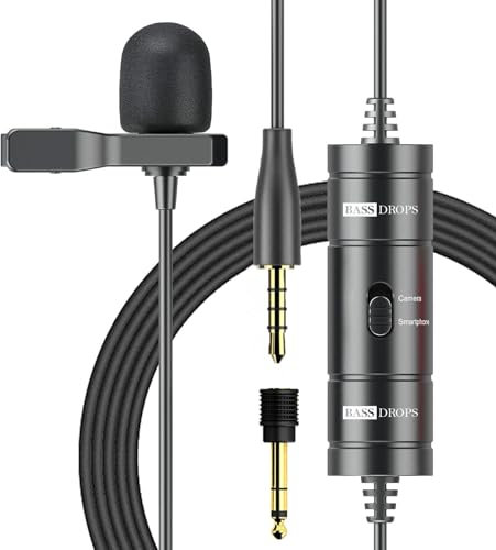 BassDrops Microphone cravate professionnel à condensateur omnidirectionnel pour iPhone, smartphone Android, appareil photo reflex numérique, caméscopes, enregistreurs audio, enregistrement ordinateur