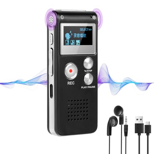 Enregistreur Vocal Numérique 8 + 32GB MP3 Lecteur Audio 1536kbps - Enregistrement Haute Qualité avec Micro & Haut - Parleur, Protection par Mot de Passe, Écran LED, Multilingue
