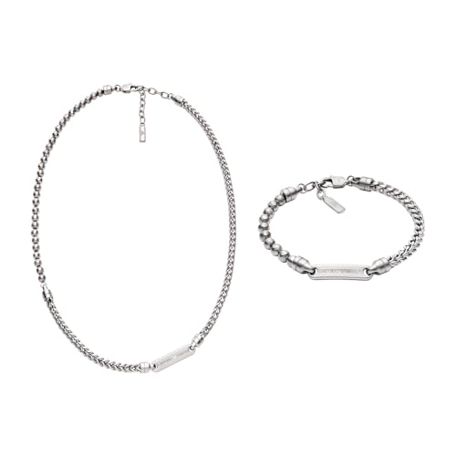 Emporio Armani Homme Collier et Bracelet en Acier Inoxydable Argenté, Ensemble