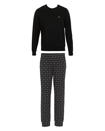 Emporio Armani Classic Pattern Pajamas Set Ensemble de Pijama, Noir, M Homme