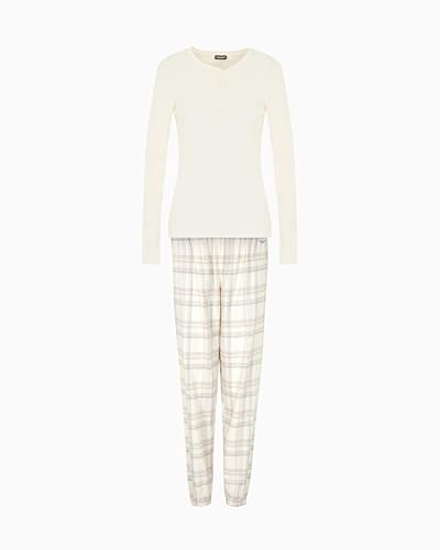 Emporio Armani Check Long Pajamas Ensemble de Pijama, crème, L Femme