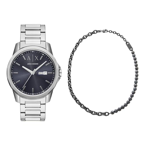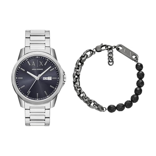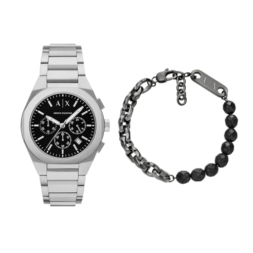 Armani Exchange Homme Montre en Acier Inoxydable Argent et Bracelet, Ensemble