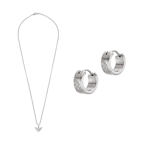Emporio Armani Homme Collier et Boucles d’Oreilles en Acier Inoxydable Argenté, Ensemble