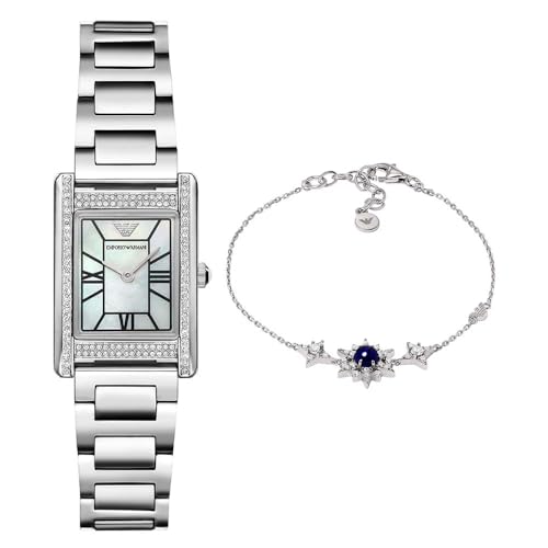 Emporio Armani Femme Montre en Acier Inoxydable Argenté et Bracelet en Argent Sterling, Ensemble
