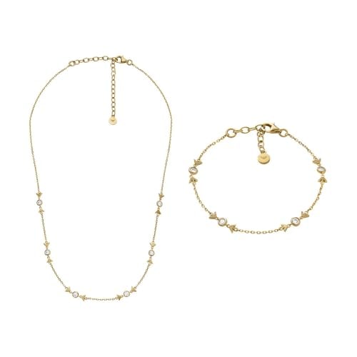 Emporio Armani Femme Collier et Bracelet en Argent Sterling Doré, Ensemble