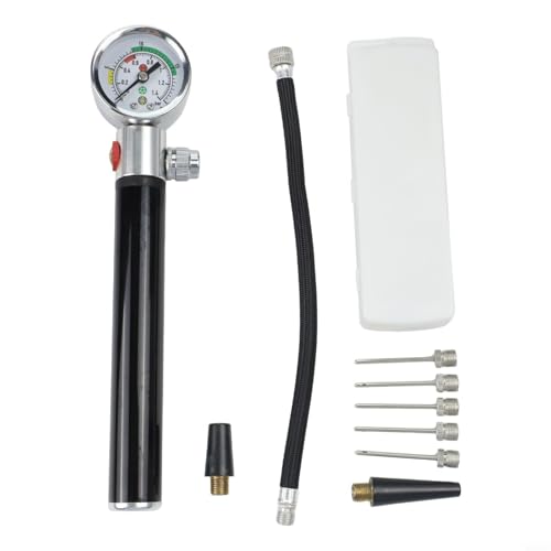 Pompe à vélo portable avec manomètre, gonfleur portable pour valves interchangeables, idéal pour les équipements de sport (ensemble complet de basket-ball)