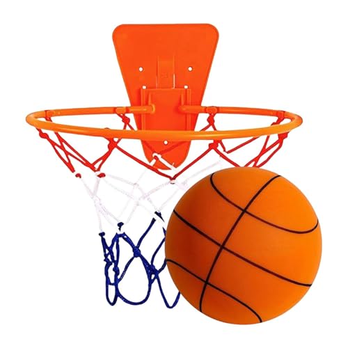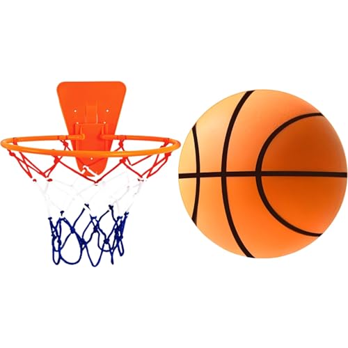 yeeplant Ensemble de basket-ball silencieux avec filet, 7 rayures oranges, mousse souple, ballon d'intérieur pour les tout-petits, matériau PU pour jouer sans déranger