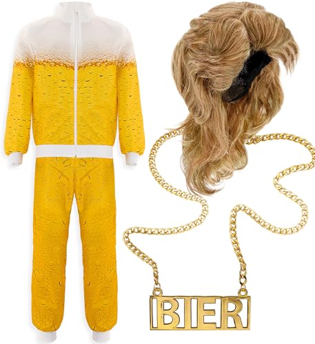 W WIDMANN MILANO Party Fashion - Ensemble de costume survêtement avec perruque et collier de bière, tenue des années 80, survêtement, tenue Bad Taste, style rétro
