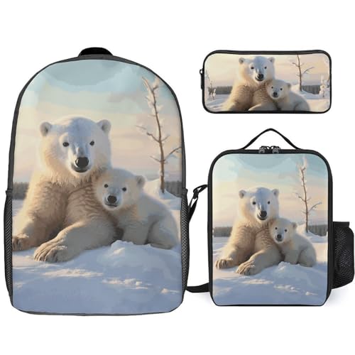 BTCOWZRV Ensemble sac à dos avec trousse à stylos et sac à déjeuner isotherme pour homme et femme - Grande capacité - Sac à dos de voyage décontracté avec sangles réglables, blanc, One Size, Sacs à