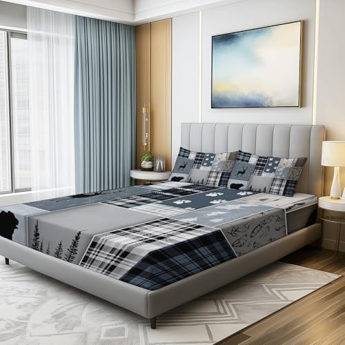 Ensemble Drap Housse Et Taie d'oreiller, Imprimé Rétro Patchwork Géométrique Microfibre avec Élastique pour Matelas Epais - Draps Housse Confortable (160 x 200 + 30 cm,Multicolore)
