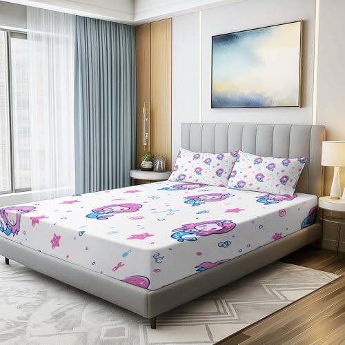 Ensemble Drap Housse Et Taie d'oreiller, Imprimé Dessin Animé Abstrait Étoiles Microfibre avec Élastique pour Matelas Epais - Draps Housse Confortable (160 x 200 + 30 cm,Blanc)