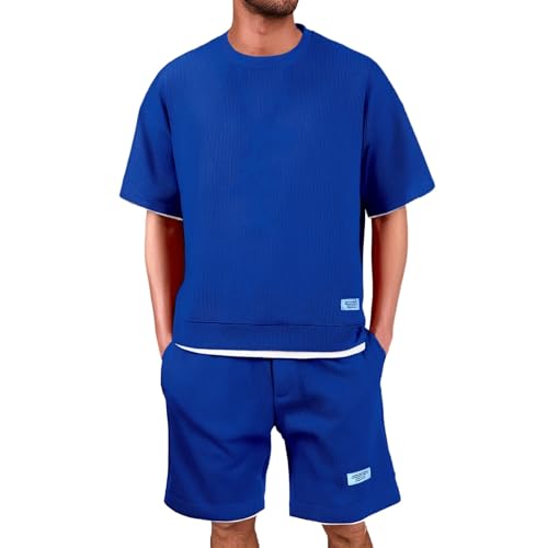 Bastwahl Ensemble Sport Homme Short et t-Shirt, T Shirts et Short pour Hommes Ensemble Survêtement à Manches Courtes Jogging Sportswear d'été M-6XL Blue M
