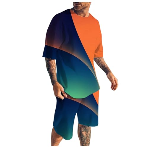 Générique Short Ensemble Homme Ete Chic Sport Manches Courtes avec Poches Sportswear Survetement Court Respirant Tenue Tshirt Bermuda Baggy 2 Pièce Jogging Orange M