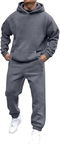 Ensemble De Sport Homme Training Complet Sweat À Capuche, avec Poche Kangourou Cordon Serrage À Taille Grandes Ample Pantalons Couleur Unie Gym Sportswear De Couple Exercice Ete
