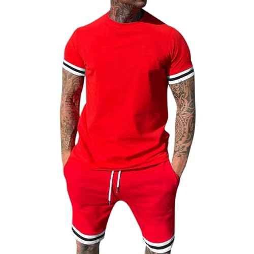 Bastwahl Ensemble Sport Homme Short, T Shirts et Short pour Hommes Ensemble Survêtement à Manches Courtes Jogging Sportswear d'été M-6XL Red XL
