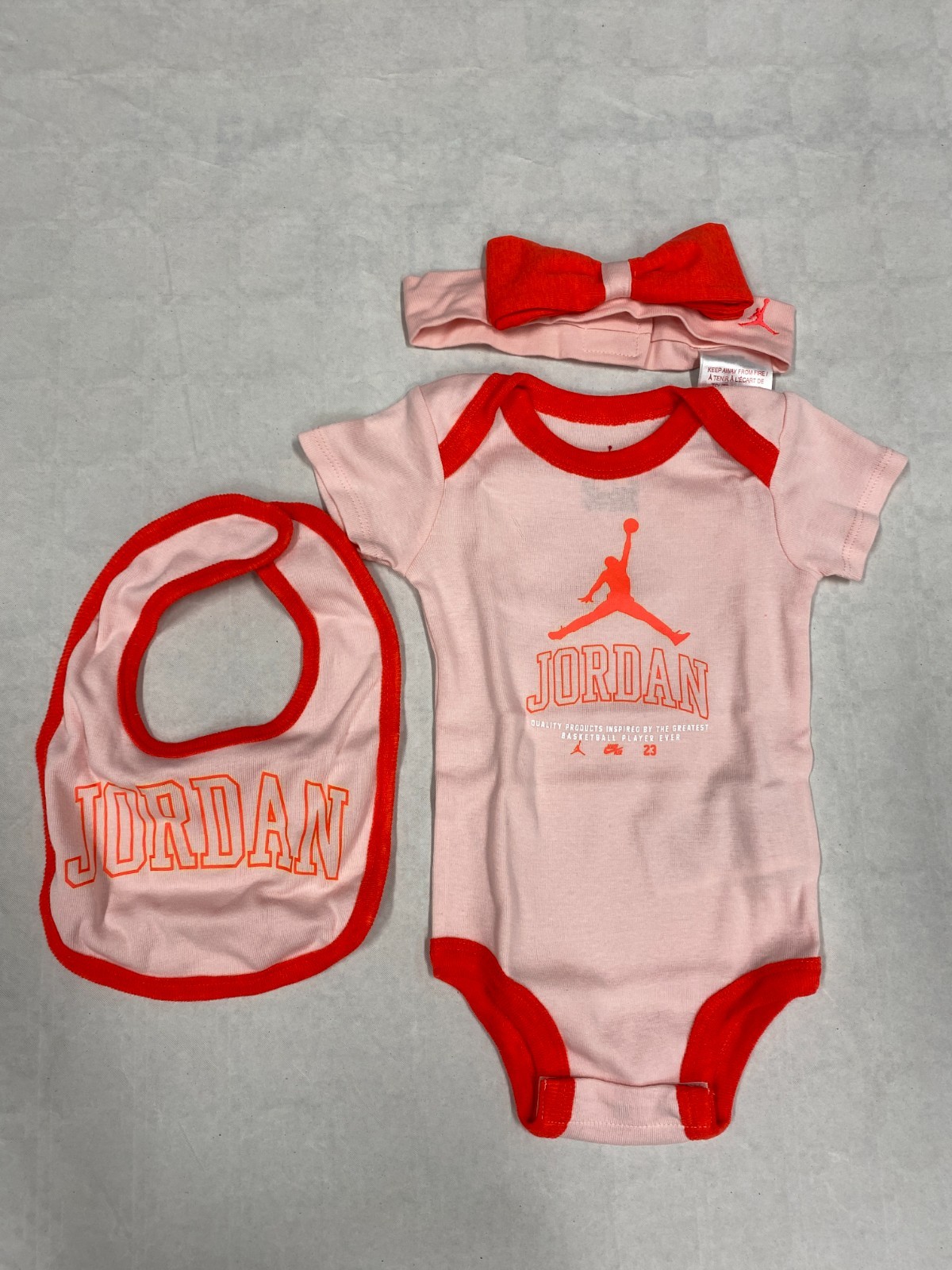 Ensemble Bébé Jordan Nike 3 Pièces Rose Rouge Body Bavoir Bandeau 6-12M