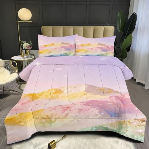 Fotmung Ensemble Lit Complet 160x200 cm Montagnes Multicolores, Housse en Microfibre Imprimée et Duvet Coton 4 Saisons, Comprend 2 Taies, Excellence et Qualité Supérieure, Chaud et Respirant E116