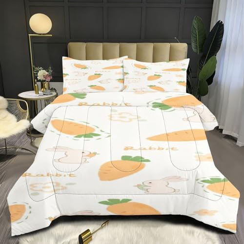 Fotmung Ensemble Lit Complet 160x200 cm Carotte, Housse en Microfibre Imprimée et Duvet Coton 4 Saisons, Comprend 2 Taies, Excellence et Qualité Supérieure, Chaud et Respirant E334