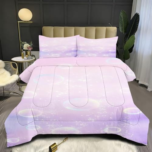 Fotmung Ensemble Lit Complet 160x200 cm Bulles Violets, Housse en Microfibre Imprimée et Duvet Coton 4 Saisons, Comprend 2 Taies, Excellence et Qualité Supérieure, Chaud et Respirant E268